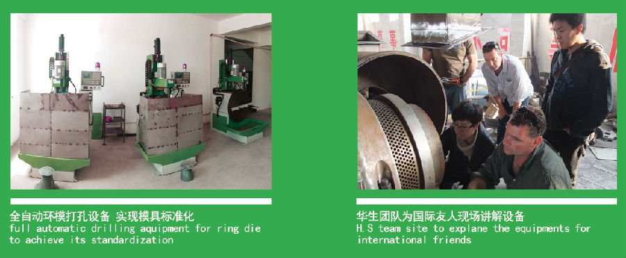 華生機(jī)械堅(jiān)持采用4Cr13(俗稱不銹鋼)環(huán)模,通過科學(xué)布孔,改進(jìn)型抱箍裝配,